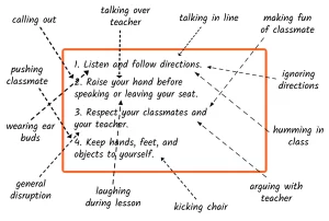 First, it ensures that your classroom rules are able to cover every misbehavior you’re likely to encounter. If you can’t clearly and immediately draw a line from a misbehavior to a rule, then you have to add a new rule.